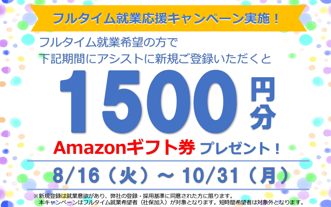 お仕事のことならアシストへ、まずはお気軽にご相談下さい!