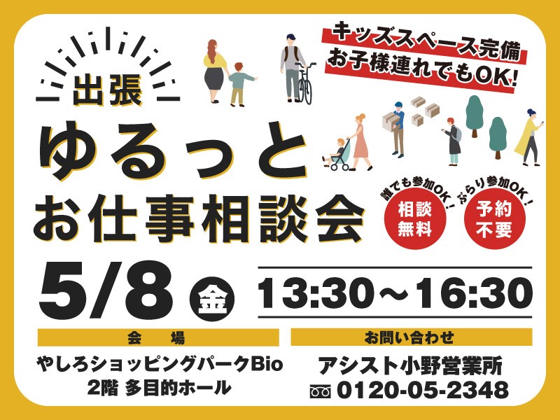 | 【備考】 | 【お仕事相談会 5月の開催予定】 日時:5/8 (金)13:30~16:30 5/23(土)13:30~16:30 場所:やしろショッピングパークBio2階 多目的ホール 【お仕事相談会 6月の開催予定】 日時:6/3 (水)13:30~16:30 6/20(土)13:30~16:30 場所:やしろショッピングパークBio2階 多目的ホール お気軽にご相談ください!(事前予約も可) \予約不要・私服OK・匿名相談OK/ お仕事のモヤモヤ、聞かせてください。 キャリアプランナーがあなたの「これから」を一緒に考えます。 相談会であなたに合った働き方、見つけましょう! 参加無料です。お気軽にどうぞ♪ 【応募後の流れについて】 応募内容を確認させていただき、小野営業所(0794ー70ー9150)よりお電話させていただきます。 応募→就業の流れは以下の流れになります。 【1】応募(エントリー) 【2】お電話で簡単な打ち合わせ(電話) 【3】登録(無料)、お仕事の紹介 【4】職場見学 【5】契約、就業開始 ※ご相談から登録、就業開始まで「完全無料」なので、ご安心下さい! |